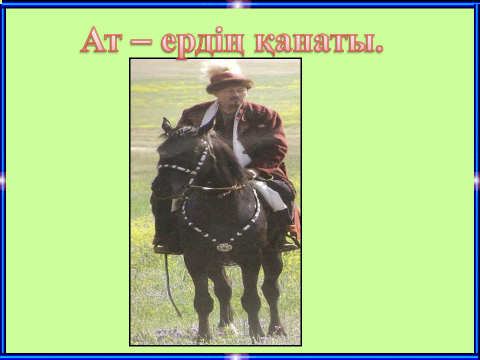 Қазақ үшін ең құнды, қасиетті мал–жылқы. Қазақ халқы жылқыны ел қорғаны, ердің жан серігі дейді. Қазақ ат десе ішкен асын жерге қояды. Ең қасиетті, ең қадірлі малы.