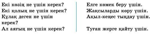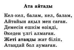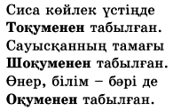 Өлеңді көшіріп жаз, қарамен жазылған сөздердің астын сыз. Өлеңдегі оқу, тоқу, шоқу сөздерін оқы, тоқы, шоқы сөздерімен салыстыр. Қандай өзгеріс байқадың? Өлеңді жаттап ал.