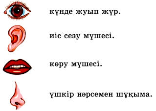 Сөздерді тиісті сезім мүшелерімен сәйкестендір. Дене мүшелерінің атауына дыбыстық талдау жаса.