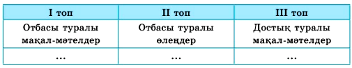3-тапсырма. Ойлан, тап. Кестені толықтыр.