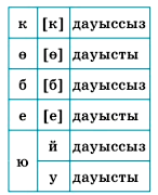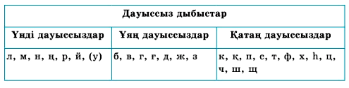 4-тапсырма. Кестеге дауыссыз дыбыстарды жатқа бөліп жаз.