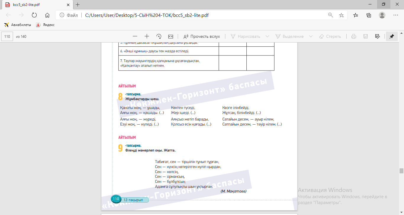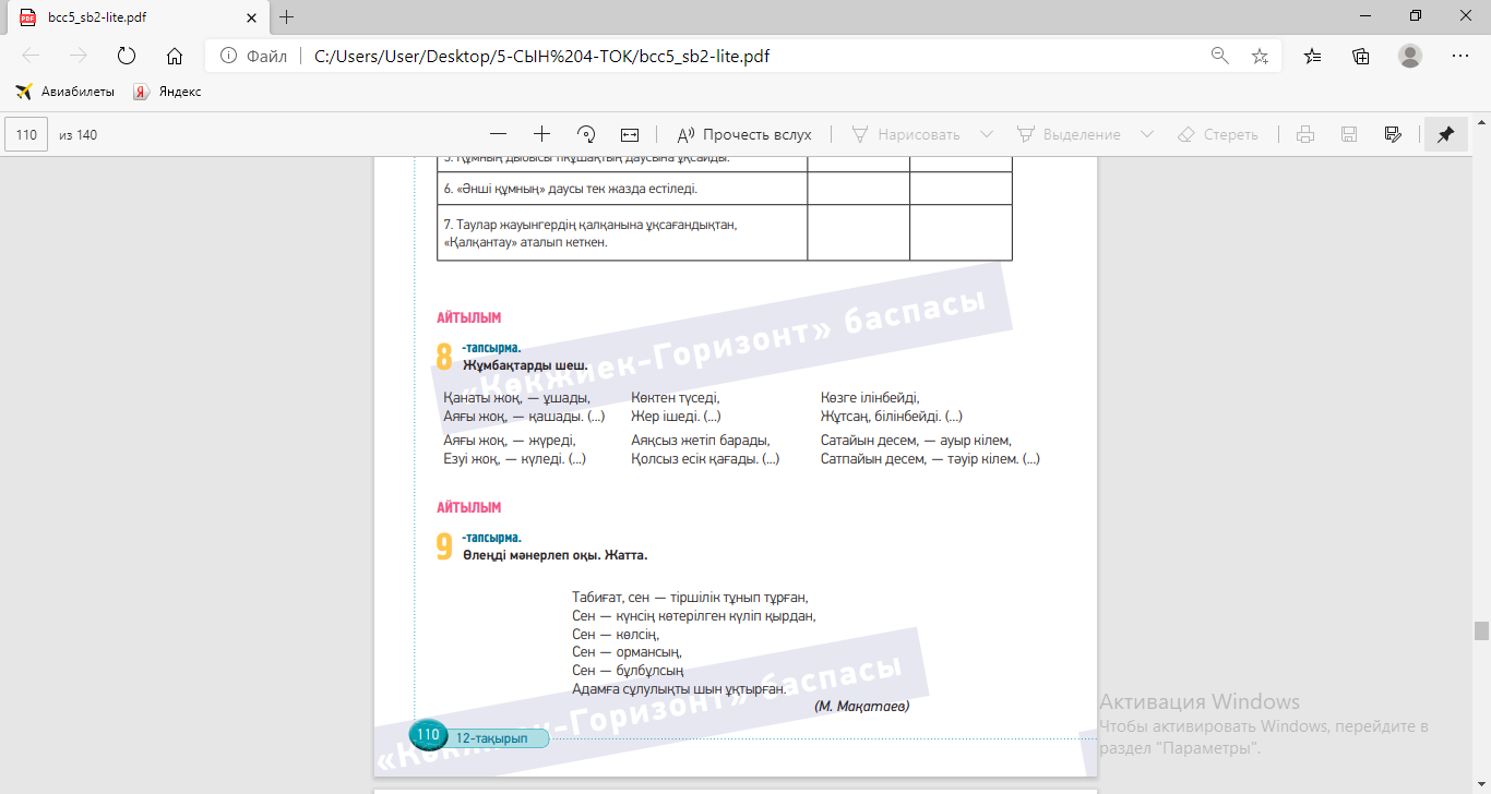 Айтылым. 3-тапсырма. Өлеңді мәнерлеп оқы. Жатта.