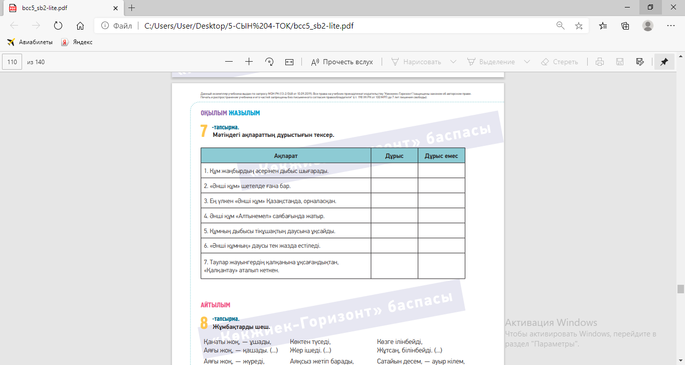 Оқылым. Жазылым. 1-тапсырма. Мәтіндегі ақпараттың дұрыстығын тексер.