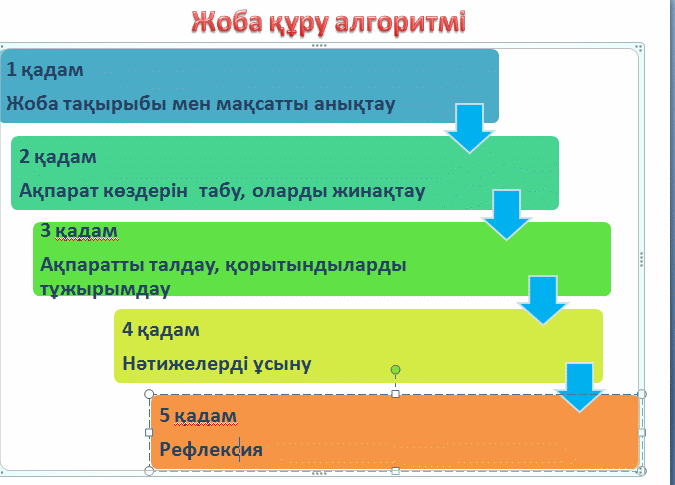 Сабақ барысында оқу мақсаттары сабаққа сай жүргізілді. Оқушылар жоба құруды, жоба істеуді, ақпарат көздерін қолдануды білді. |