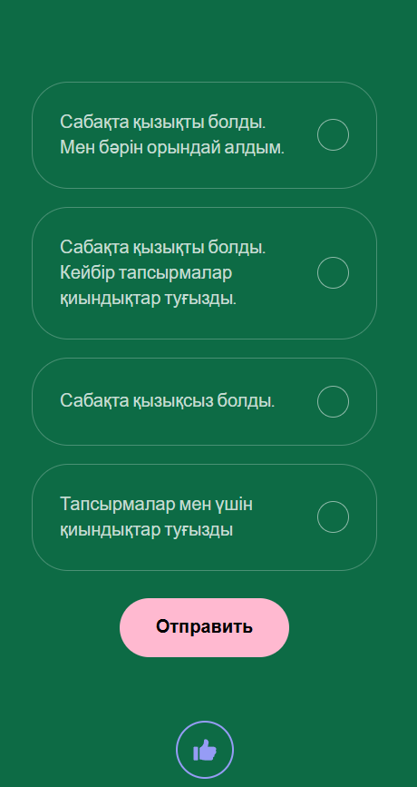 Оқушылар сабақ барысында қандай есептерді түсінгенін айтады. Алған баллдарын есептеп бағалау парағын толтырып, айтады. күнделіктеріне жазып алады. QR Code арқылы кері байланыс береді