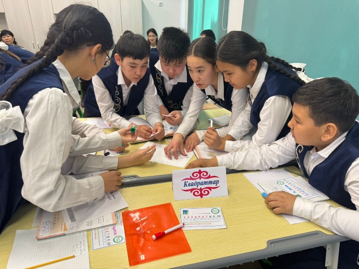 Амандасады, топқа бөлінеді «Квадраттар», «Кубтар», «Көбейткіштер» Интербелсенді тақтадан әр топ өз жұмыстарын қорғайды . Жұмыс нәтижелерімен топтар өзара бөліседі Сұрақтарға жауап береді 1. Мектеп бағдарламасындағы формуланы Леонард Эйлер енгізді. 2.Өрнектерді ықшамдау, түрлендіру, математикалық есептеулерді жылдам шығару мақсатында қолданылады 3.Күрделі есептерді қарапайым түрге келтіріп тез шешуге көмектеседі. |