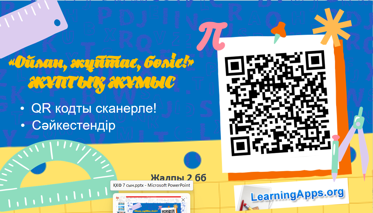 Тапсырманы бірінші орындаған оқушы тақтаға шығарады. Шығарғаннан кейін қалған оқушылар оны тексереді. ⠀⠀ Оқушылар жұптасып, learningApp платформасында есептерді сәйкестендіреді