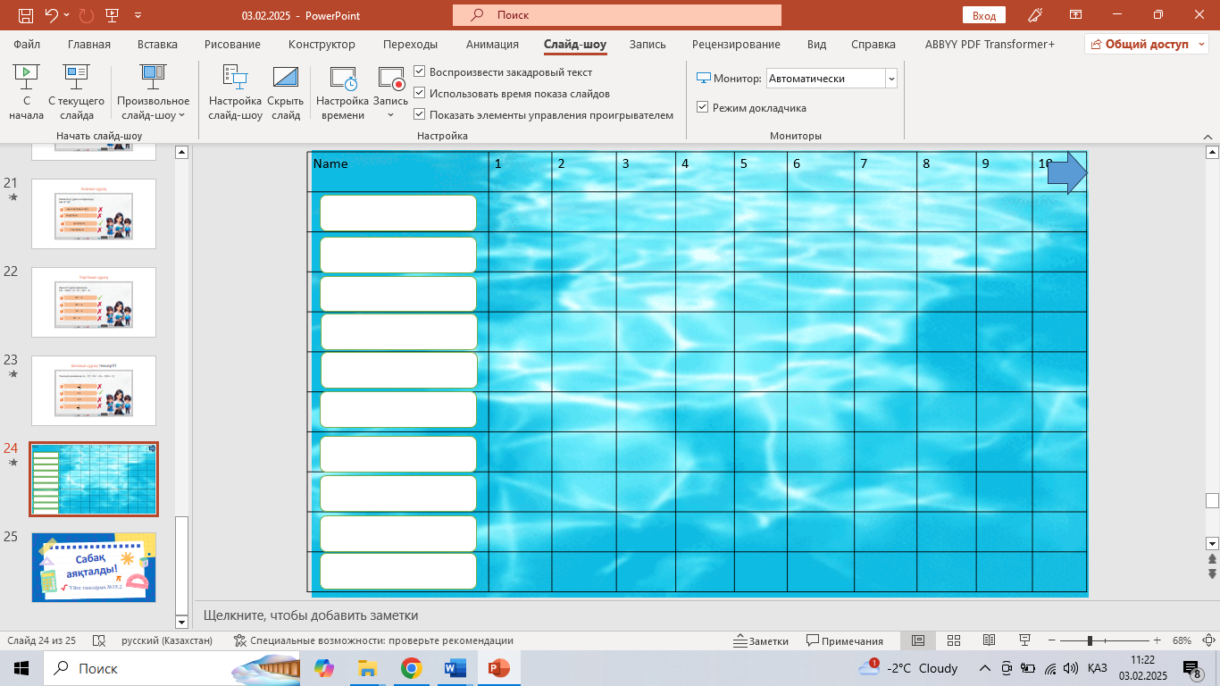 Ұйымдастыру 7 минут |