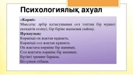 Мақсаты: Бір-біріне құрмет сезімін ояту Амандасады