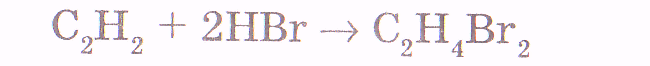 2) Қанықпаған көмірсутек ацетилен галогенсутекпен қосылу реакциясына түсіп, оның екі молекуласын қосып алады: