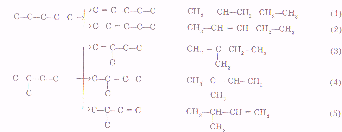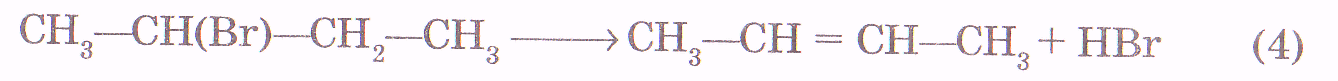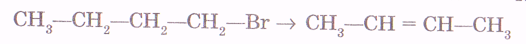 Бастапқы зат көмірсутектің галогентуындысы да реакция өнімі кұрамында кос байланысы бар этилен көмірсутек. Реакция өніміндегі көміртек атомдарының саны мен олардың байланысу реті бастапқы косылыстағыдай. Сондықтан көміртек тізбегін өсірудің немесе кыскартудың қажеттілігі жоқ. Енді қос байланыстың түзілу жолдарын талдап қарастырып, өзара салыстырайык. Қосылыс молекуласына қос байланысты төмендегі жолдармен енгізуге болады:
