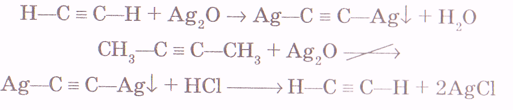 Диметилацетилен мен ацетилен касиеттерінің арасындағы айырмашылықка сүйеніп оларды бөлуге болады. Олардың коспасына күміс оксидінің аммиактағы ерітіндісімен әсер еткенде түссіз күміс ацетилениді (АgС = САg) тұнбаға түседі. Түскен түнбаны бөліп алып, концентрлі тұз қышкылымен әсер еткенде ацетилен бос күйінде бөлініп шығады: