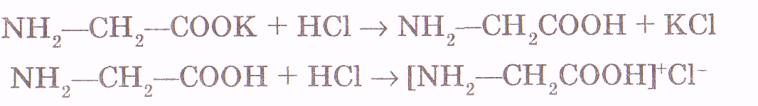 6) Аминсірке кышкылының калий түзына бір моль НСІ-мен әсер еткенде аминсірке кышқылы түзіліп, ол НСІ-дің екінші молімен түз түзеді: