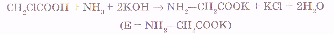 5) Сілтілік ортада аммиак катысында хлор атомы амин тобына алмасып, аминсірке қышкылыныд калий түзы түзіледі: