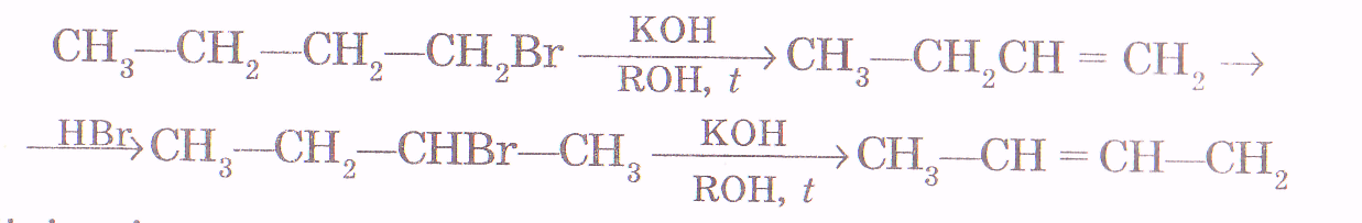 Дегидрлеу тәсілі (1) тиімсіз, себебі реакция нәтижесінде изомер бутендердің қиын бөлінетін коспасы түзіледі. Қалған үш тәсілдің ішіндегі 1-бромбутаннан кай затты оңай алуға болатын реакция теңдеулерін салыстырып, 2-бромбутан аркылы алу керек деген тоқтам жасауға болады: