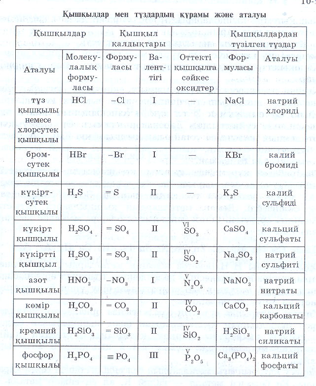 Қышқылдар: құрамы, жіктелуі, аталуы. Қышқылдардың алынуы, химиялық қасиеттері, қолданылуы.