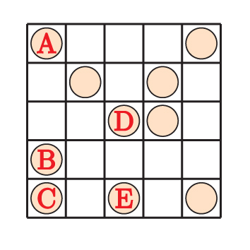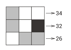 3 және 4 сандарын шеңберге жазады, осылайша әрбір баған, әрбір жол