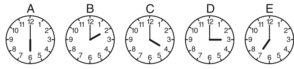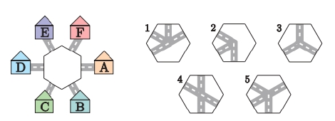 Айдана алты нүктені нөмірлеп, алдымен жұп нүктелерді, содан кейін тақ нүктелерді қоса отырып, екі үшбұрыш салады. Алынған үшбұрыштарды ол әрқайсысына өз түсімен бояды. Осы әрекеттердің нәтижесінде Айдана бес нұсқаның қайсысына ие болуы мүмкін?