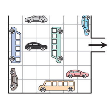 Суретте көрсетілген гаражда тұрақтағы көліктер алға немесе артқа жылжи алады. Қара көлік гараждан кедергісіз шығып кетуі үшін ең аз көліктердің санын өзгерту керек пе?