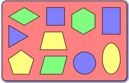 геометриялық фигураларды ажыратуды , тік төртбұрыш, төртбұрыш, шаршы;