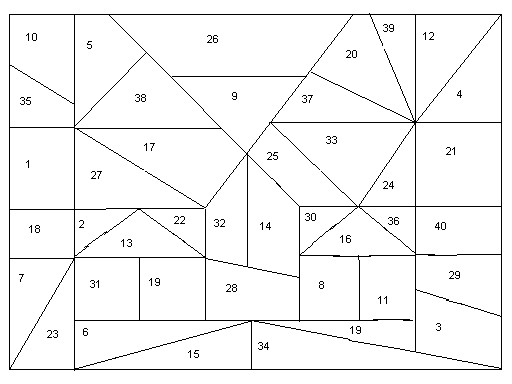 1 қатарда 8 тас, аралары 2 см-ден, 2-ші қатарда 15 тас, аралары 1 см-ден.