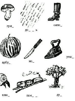 Незнайка в школе сдавал зачет. Учитель выдал ему картинки с нарисованными предметами, Незнайка должен был назвать эти предметы и записать данные названия в правильном виде. Но он этого сделать не смог. Помогите ему, ребята! Подпишите картинки!