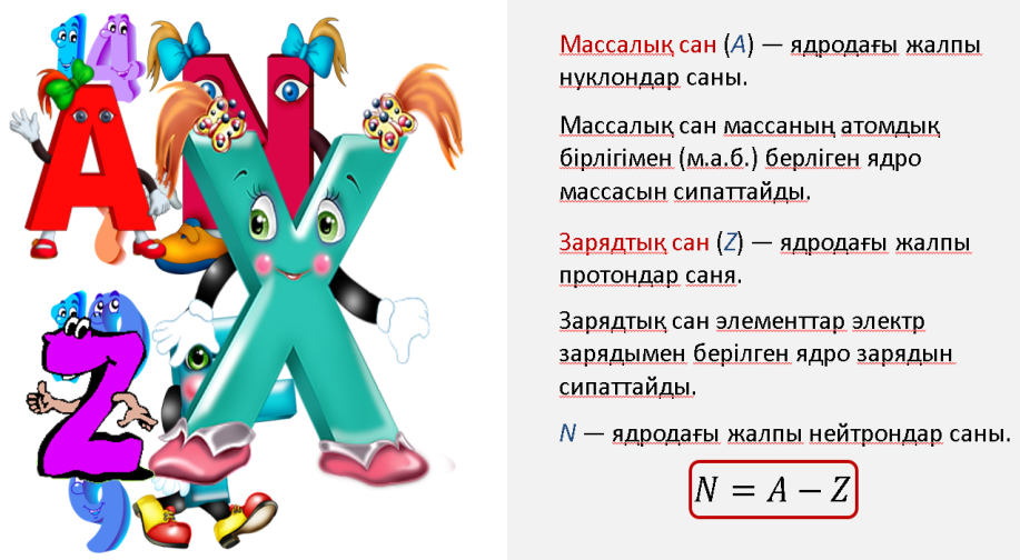Ұйымдастыру кезеңі. Оқушылармен сәлемдесу, психологиялық көңіл – күйін смайликтер көмегімен анықтау 1)Ұйымдастыру кезеңі: 2)Оқушылармен сабақтың мақсатын қойып алу және күтілетін нәтижені нақтылау. 3)Терминологиямен жұмыс Нуклидтердің, аттары мен Z, A, N жазылған және толықтыруды қажет ететін бос торкөздері бар кестелерді таратып, оқушылардың бұл терминдермен таныс екендігіне көз жеткізу керек. |