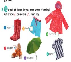 Ex 2. Which of these do you need when it’s rainy? Put a tick or a cross.