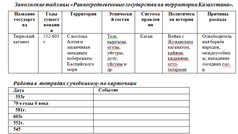 Определяет историческую значимость формирования Тюркского каганата, выявляя взаимосвязи между событиями Знат государства VI-IX вв. и используя карту объяснять политические процессы Определяет основные направления внешней политики Великого Тюркского каганата