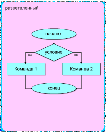 Разветвляющийся алгоритм - алгоритм, в котором в зависимости от выполнения некоторого условия совершается либо одна, либо другая последовательность действий