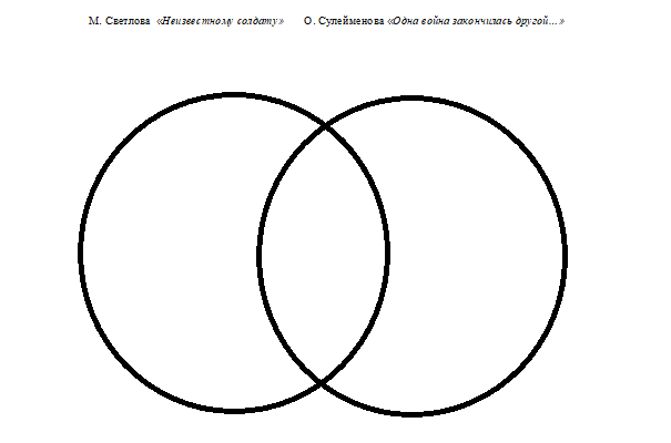 2) Задание. Прочитайте стихотворения М. Светлова «Неизвестному солдату» и О. Сулейменова «Одна война закончилась другой…» сравните чем они похожи и чем отличаются? Составьте диаграмму Венна.
