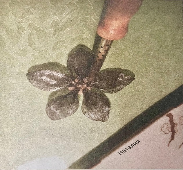 1.Заготовки лепестков закрепляют слой за слоем к центру «точечной спайкой»