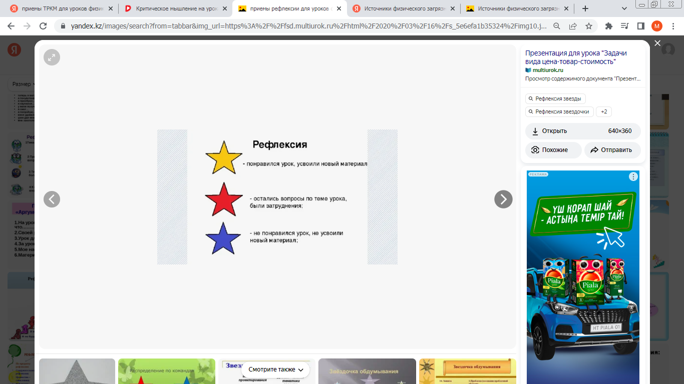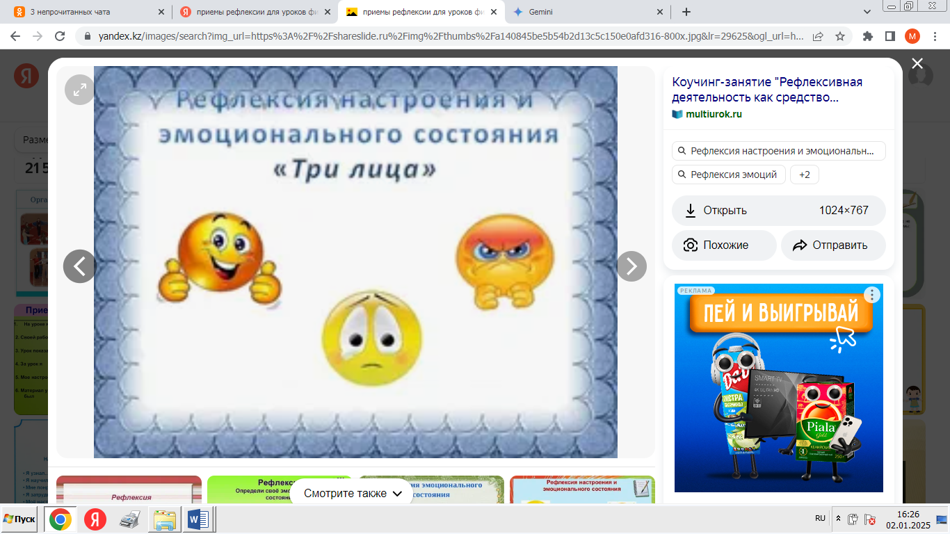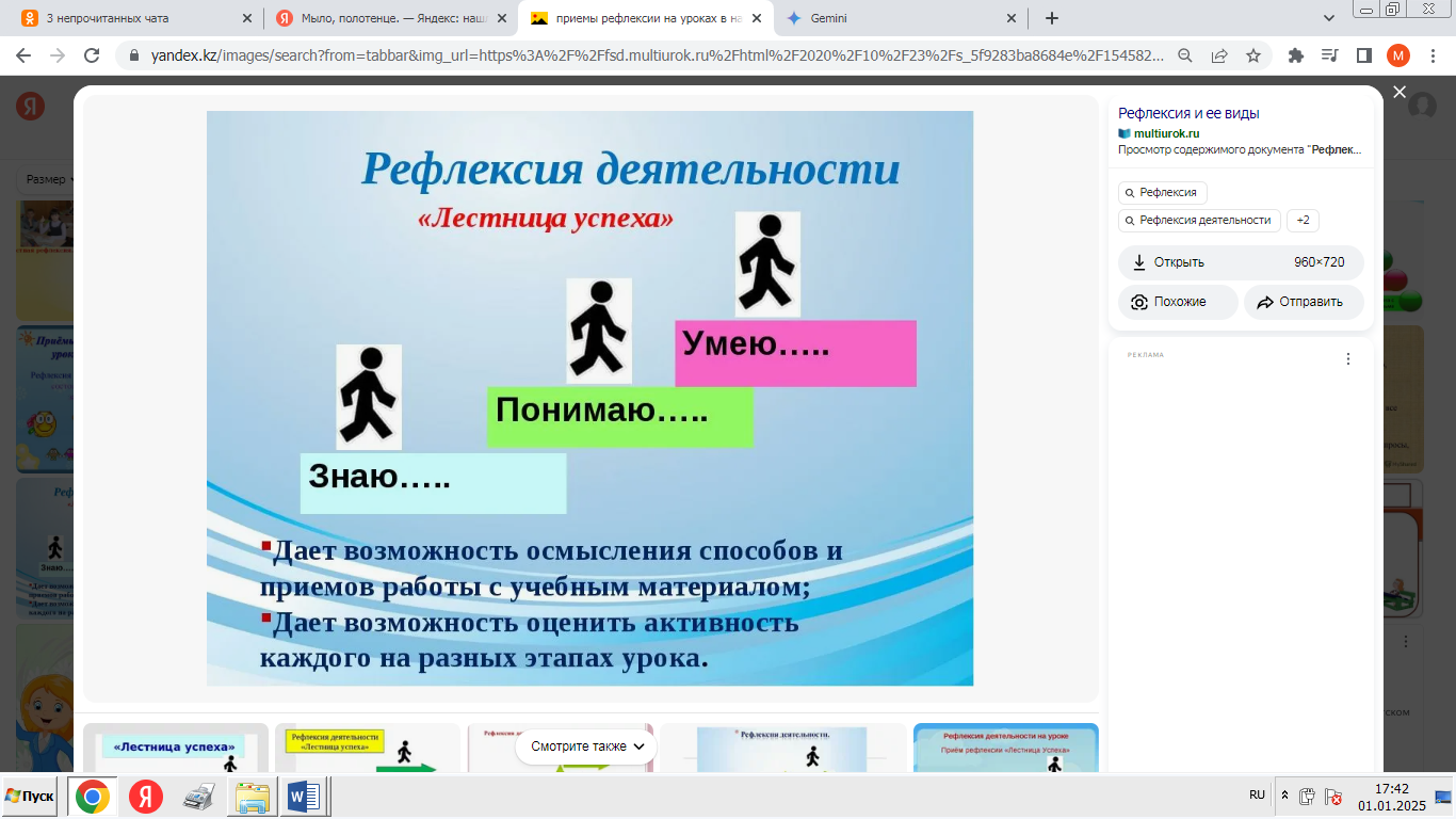 Рефлексия. Прием ««Оцени себя» |