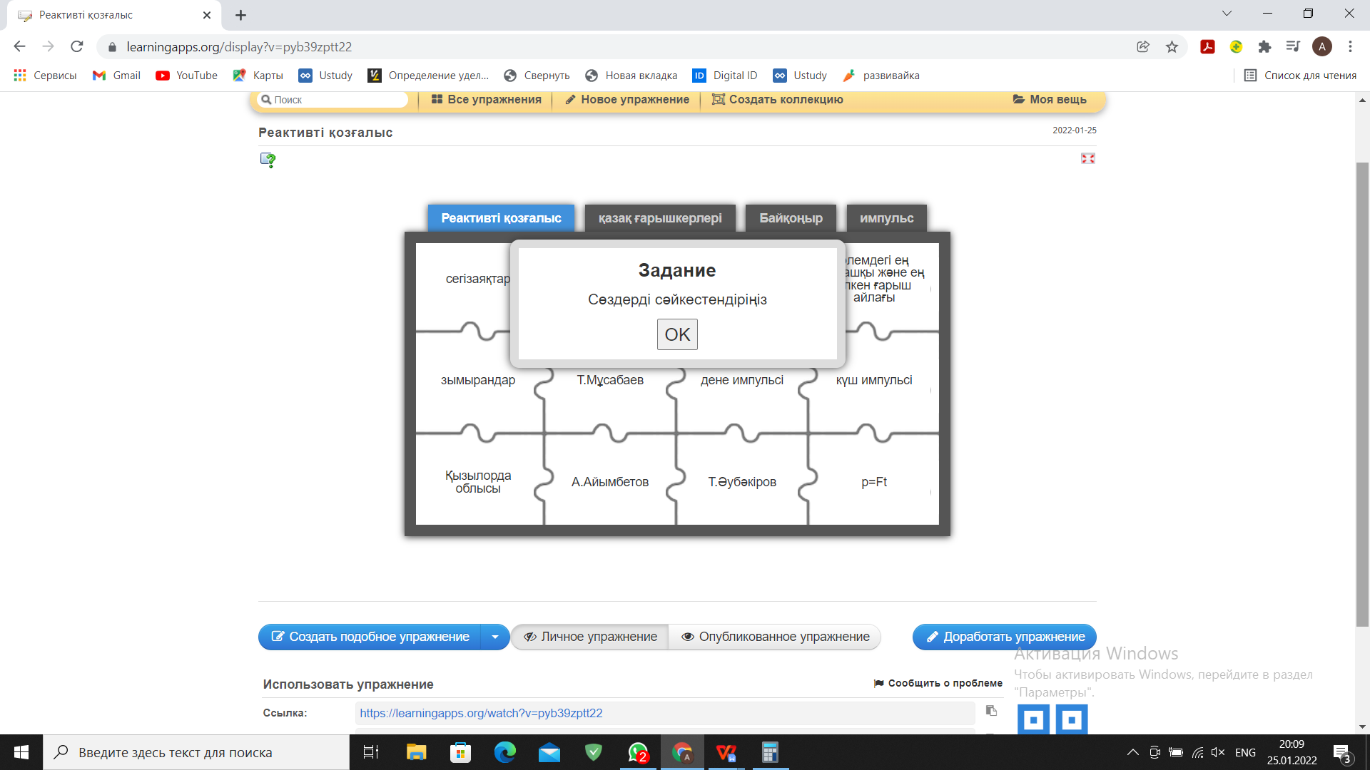 Сабақты бекіту. Learningapps.org сайтынан тапсырма.