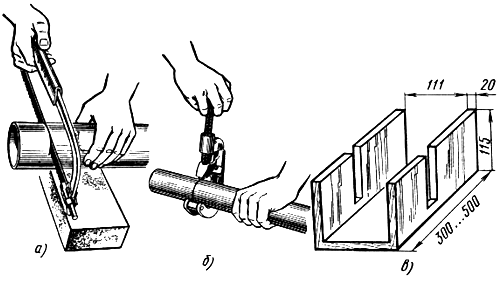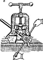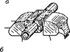 а) резка труб ножовкой. б) резка труб труборезом.