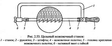 Полотно должно быть натянуто в ножовочном станке не слишком туго, но и не слабо. В том и другом случае увеличивается возможность поломки полотна и случайного ранения работающего.