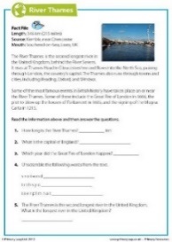 Students read the text and answer the questions. ANSWERS: 1 You can cross the River Thames by bridge a y cable car. 2 It begins in the Cotswold Hills and ends in the North Sea. 3 It freezes over. Student Discuss the questions about the situation in your town or city Students copy and complete the table. ANSWERS: