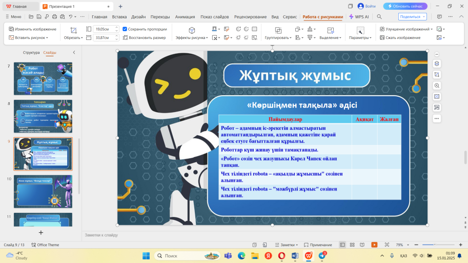 Робот анықтамасын тұжырымдайды Роботтардың түрлерінің үлгілері және оларды қолдану салаларына мысал келтіреді |