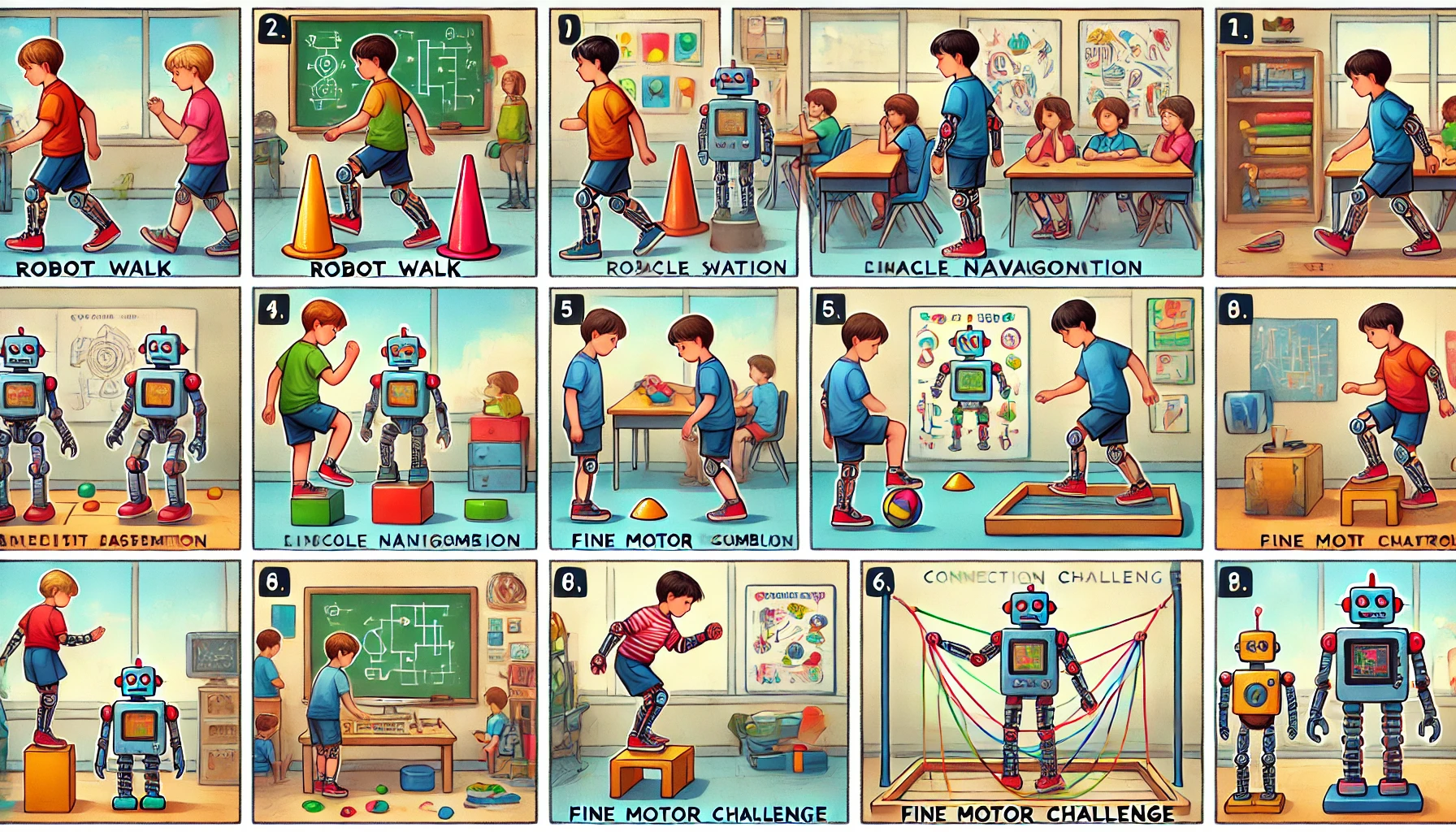 Бұл жаттығу балаларға өз дене мүшелерін дұрыс үйлестіріп, робот қозғалысындағы секірістер мен бұрылыстарды жасауға мүмкіндік береді.