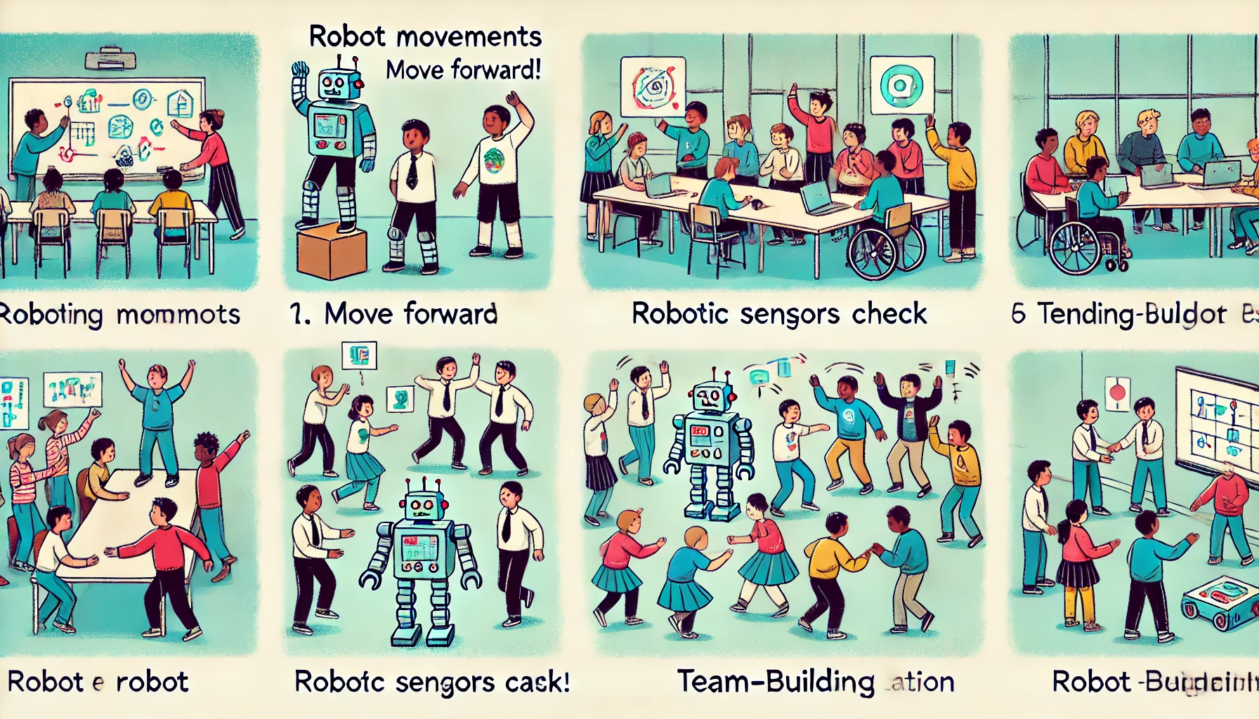 Бұл жаттығу кезінде оқушылар шынайы роботтың қозғалыс үлгісін үйренеді және командалық жұмыс дағдыларын дамытады.