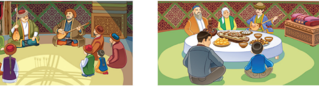 1.Ұйымдастыру кезеңі.Оқушылармен амандасу.Түгендеу 2.Қызығушылықты ояту. «Күн!Тас! Қоршау!» ойыны Ойын оқушылардың зейіні мен қозғалыс жылдамдығын дамытуға бағытталған.Ойын шарты: оқушылар бірнеше топқа бөлініп отырады.Кезек-кезек балаларға «Күн», «Тас», «Қоршау» атты бұйрықтар беріледі. Сөздердің айтылу ретін үнемі өзгерту қажет. Оқушылар әрбір сөзге қимылмен жауап берулері шарт.Егер «Күн» деген сөз айтылса, олар алақандарын ашып, қолдарын жоғары көтереді. «Тас» сөзінде қолдарын түюлі жұдырықтарымен көтереді. «Қоршау сөзінде алақандарын ашып, қолдарын көтереді, бірақ саусақтары бір-біріне тығыз жанасып тұруы керек. 3.Үй тапсырмасын тексеру Ой қозғау, жаңа тақырыпқа кіріспе: -Қазақ халқының дәстүрлерінде домбыра қандай рөл атқарады? -Сіздің ойыңызша, робот домбырада күй ойнап, мақал-мәтелдер айта ала ма?