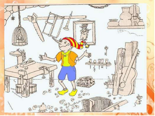 иноккиоға шеберханада музыкалық аспаптарды табуға