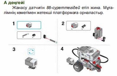 Дескриптор: -Жанасу датчигін суреттегідей етіп жинайды. Мұғалімнің көмегімен жетекші платформаға орналастырады Жұптық жұмыс 2- тапсырма «Ойлан, жұптас, бөліс» әдісі арқылы жұптасып жұмыс жасайды