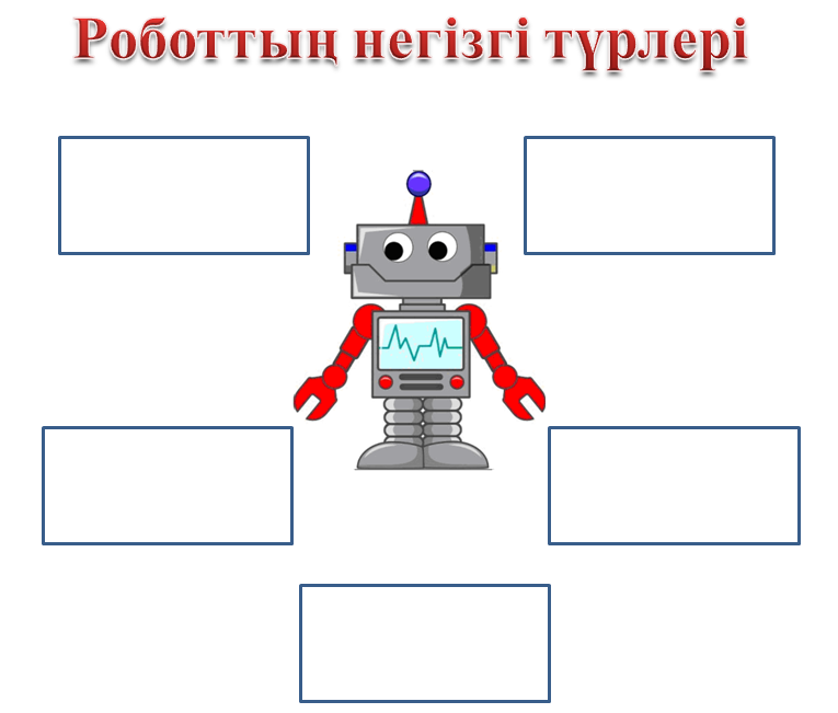 Жаңа тақырыпты түсіндіру. Роботты техника (робот және техника, ағылшын тілінен аударғанда robotics–роботика), роботты техника - автоматтандырылған техникалық жүйелерін әзірлейді және өндірістің қарқынды дамуына маңызды техникалық негізі болып табылатын қолданбалы ғылым. Құрылыс, өнеркәсіп, тұтыну, авиация және төтенше (әскери, ғарыш, су асты) салаларында роботты техника бар Робот-тірі организм принципі бойынша құрастырылған жандандырылған автомат құрылғы.Ол түрлі датчиктер (сенсорлар) арқылы ақпарат алады және өзіне жүктелген программаға сәйкес әрекет етеді. Алғаш рет «робот» сөзін чех жазушылары ағайынды Карел және Йозеф Чапектер 1920 жылы енгізген. «Робот» сөзі чех тілінде «еріксіз еңбек ету» деген мағынаны білдіреді. Бүгінгі таңда роботты қазақ тілінде «құлтемір» деп те атап жүр. Роботтың анықтамасы. Робот –екі немесе одан да көп ось бойынша программаланатын, белгілі бір дербестікпен жұмыс істеп, алға қойылған міндеттерді орындайтын механизм. 2019 жылы 16 сәуірде өткен Халықаралық Сколково роботтехникалық форумында әлемдік роботтехника нарығына аналатикалық талдау ұсынылды.Сол аналитикалық талдаудың ІІ бөлімінде роботтың анықтамасы мен жіктелуі келтірілген. SAT SENSE -сенсор ACT-әрекет THINK-ойлау Топтық жұмыс. «Кластер» әдісі 2-тапсырма.