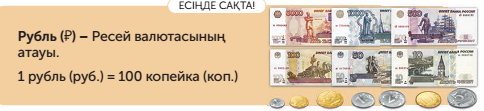 Дескриптор: Кәдесый сатып алуға қажетті соманы рубльмен және копейкамен төлеуге көмектеседі.1балл