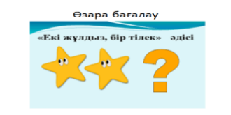 Оқушылар пікінен соң, мұғалім сабаққа жақсы қатысқан оқушыларды «Жарайсың», «Бүгін тамаша жұмыс жасады», «Талпындың» т.т. сөздермен марапаттайды. |