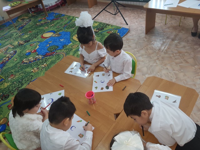 Мақсаты: өтілген әріптерді еске түсіру, әріп пен дыбыс туралы білімдерін жетілдіру. Ойын ойнай отырып суретті тануға және суретке қарап сөйлей білуге, толық жауап беруге үйрету. Дыбыстық талдау жасауға баулу. Зейінділікке, аңғарымдылыққа, мәдениетті сөйлеуге тәрбиелеу.