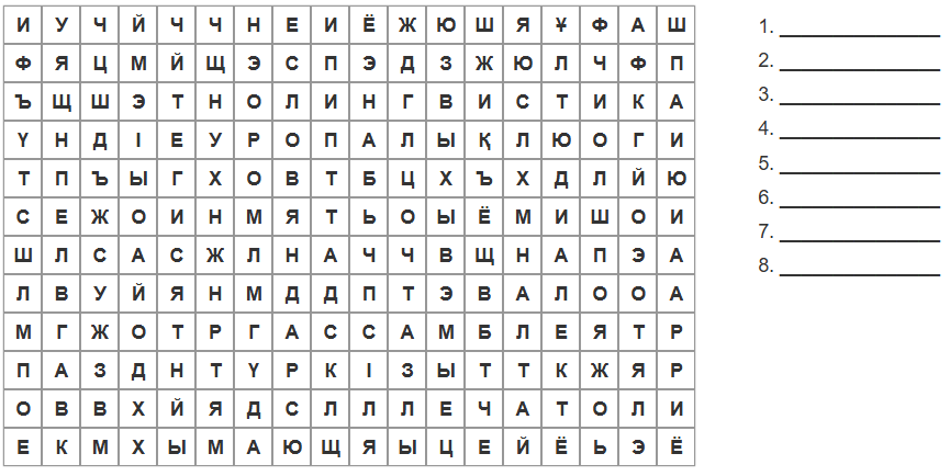 Көп сөздердің арасынан тілдер тақырыбына қатысты сөздерді анықтаңыздар