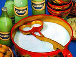 The ancient plates and dishes were made from leather, wood, ceramics. Every family had cast-iron cauldron (kazan) for cooking. The tea was boiled in cast-iron jugs, later in samovars.