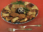 The main meal of every dastarkhan and one of the most delicious for Kazakh people was Kazakh style cooked meat. Boiled meat was served in large uncut pieces. The host was cutting the meat himself and treat every guest: pelvic bones and shank for honourable old people, brisket for son-in-law or daughter-in-law, neck-bone for girls and so on.